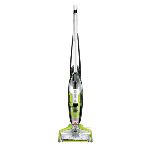 Revolutionary all-in-one multi-surface cleaning system vacuums and washes floors simultaneously.  Two tank system keeps cleaning solution and dirty water separate.  Dual action brush roll - innovative GENTLE CLEAN microfiber and nylon brush scrubs and picks up dry debris.  Swivel steering maneuvers with sharp turns.  Ideal for area rugs and bare or hard surface floors.  12” Wide cleaning path.  28oz Water tank.  14.5oz Dirt tank.  Includes 8oz Bissell Multi-Surface Solution with Spring Breeze scent.  2-Year manufacturer limited warranty.