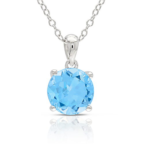 Blue topaz is sure to catch the attention of everyone when it glistens in light.  Classic solitaire 6.5mm genuine round blue topaz.  Blue topaz is set in a polished silver setting.  The pendant hangs from a sterling silver cable chain.  Chain measures 18" long.  Sterling silver has an e-coat that helps prevent tarnish.