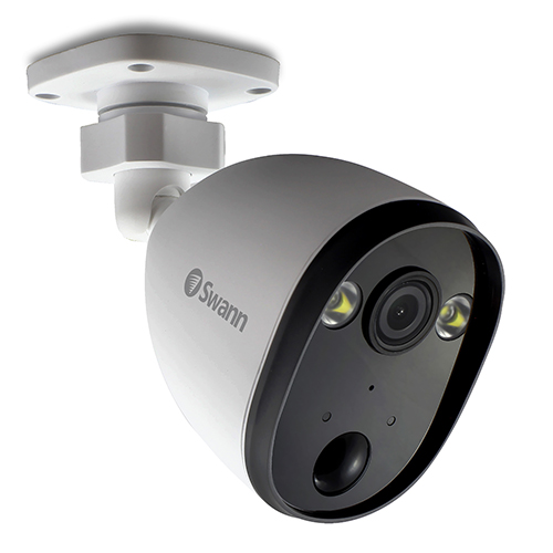 Uses a Wifi network to control record and more.  True Detect - uses heat motion and person sensing for reliable alerts.  Records clips to secure cloud plus offline back-up.  Weatherproof design works in the rain and snow all year round.  Crystal clear video in 1080p HD quality day or night.  Features motion lighting and a siren to help deter crime.  Use the Swann Security app - live stream receive alerts playback video and more.  2-Way audio lets you check-in with family pets and warn intruders.  Compatible with Google Assistant and Alexa for hands-free use.  Wide 110-degree angle covers broad areas.  Color night vision: 65ft/20 M.  Night vision distance: 100ft/30 M.  12V DC power adapter.  Built-in Super Bright LED spotlights.  Dimensions: 2.6" x 5.7" x 3.39"